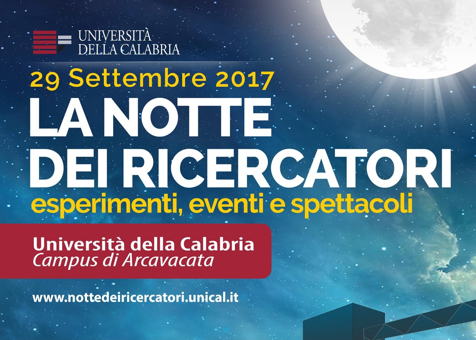 Notte dei ricercatori 2017: Regione Calabria e Fincalabra partecipano all’evento scientifico del 29 settembre all’Unical