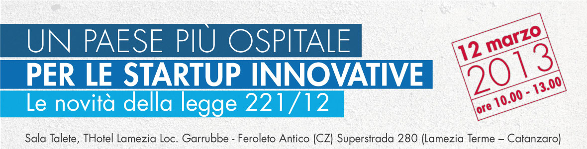 Per favorire la conoscenza delle numerose novità della Legge, CalabriaInnova organizza un incontro con Alessandro Fusacchia, che ha svolto il ruolo di coordinatore della Task Force sulle startup del Ministro dello Sviluppo Economico e che sta promuovendo nelle regioni italiane i numerosi vantaggi e le opportunità per le startup innovative.